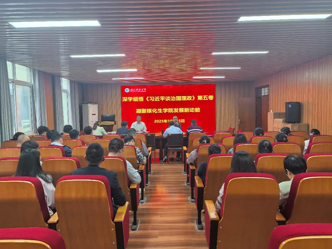 (作者:熊厚华,审稿:张规富)2025 年 10月15日下午 3:00,核化生学院党委理论学习中心组集体(扩大)学习(2025年第 8 次)在核化生二楼会议室 F201 举行,会议由学院党委书记张规富主持,学院领导班子成员、全体党员参加。