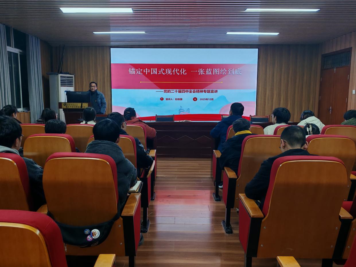 (撰稿:彭胜国,审稿:张规富) 2025年12月23日19:30,核技术与化学生物学院学生党支部在学院二楼会议室举行党的二十届四中全会精神宣讲活动。学生支部全体党员和预备党员共30余人参加了活动。