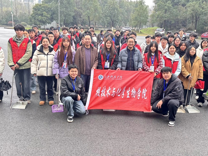 在教学楼公共区域,志愿者们细致入微,弯腰清理地面纸屑、灰尘等杂物,仔细擦拭课桌椅、讲台、窗台及走廊栏杆,对墙角缝隙、桌底等卫生死角进行“地毯式”清扫;在实验室区域,志愿者们结合专业特点,规范整理实验器材,擦拭实验台污渍,清理实验器具残留杂物,兼顾环境清洁与实验室安全规范;在学院公共区域及校园周边,大家合力清理落叶、杂草与各类垃圾,规范摆放公共设施,用双手为校园“焕新”。