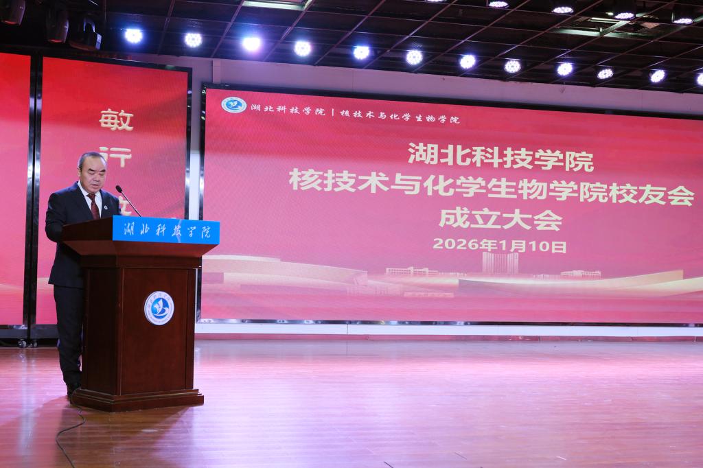 (作者:熊厚华,审稿:张规富)1月10日,湖北科技学院核技术与化学生物学院校友会成立大会在图书馆负一楼学术报告厅举行。校党委副书记、校长、校友总会会长李岱,党委常委、副校长李志雄,原学院退休教师代表马容明等,校友会秘书长陈洪国,学院现任班子成员出席大会,与学院师生代表及300余名校友共叙师生情谊、共话美好未来。大会由核技术与化学生物学院党委书记张规富主持。